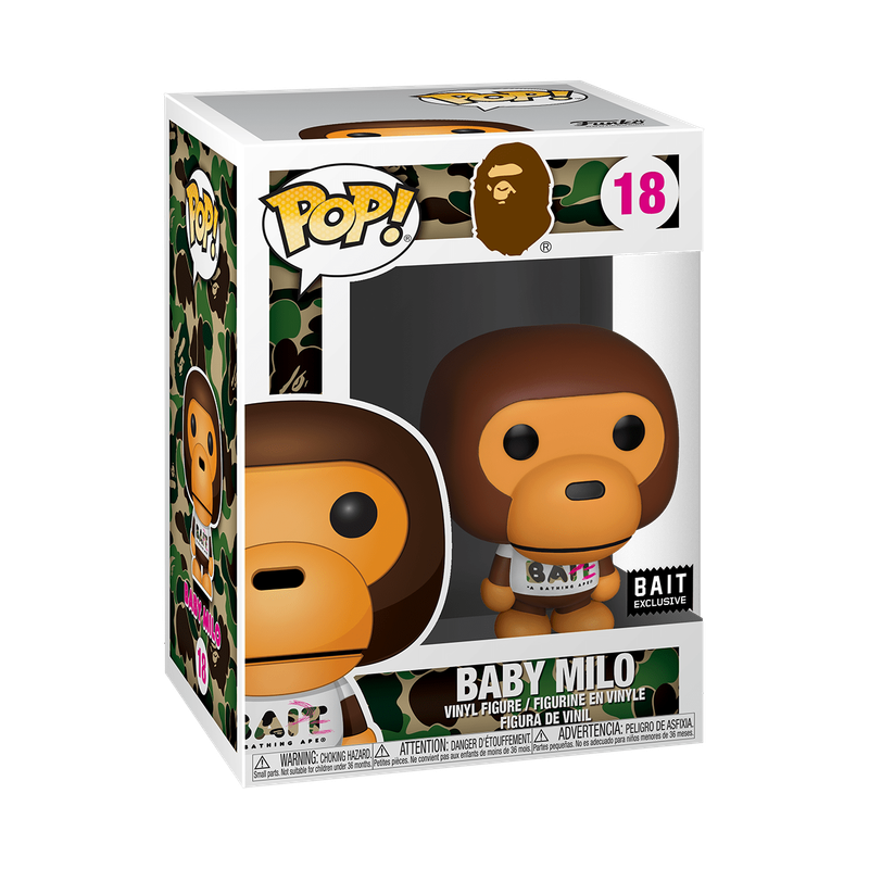 In addition to the tee BAPE and BAIT reimagined BABY MILO as a FUNKO POP TOY. This item and box is in near mint condition with a small paint smudge on plastic window. These will not be released. This is a very nice Funko Pop Bait Exclusive Baby Milo. Bape Baby Milo Bait Exclusive Figure 18 w Protector. Baby Milo x BAIT 18 Please note box conditions- Box has some minor flaws small tear on front corner dent on back corner. Follow baitme on Instagram for more information.