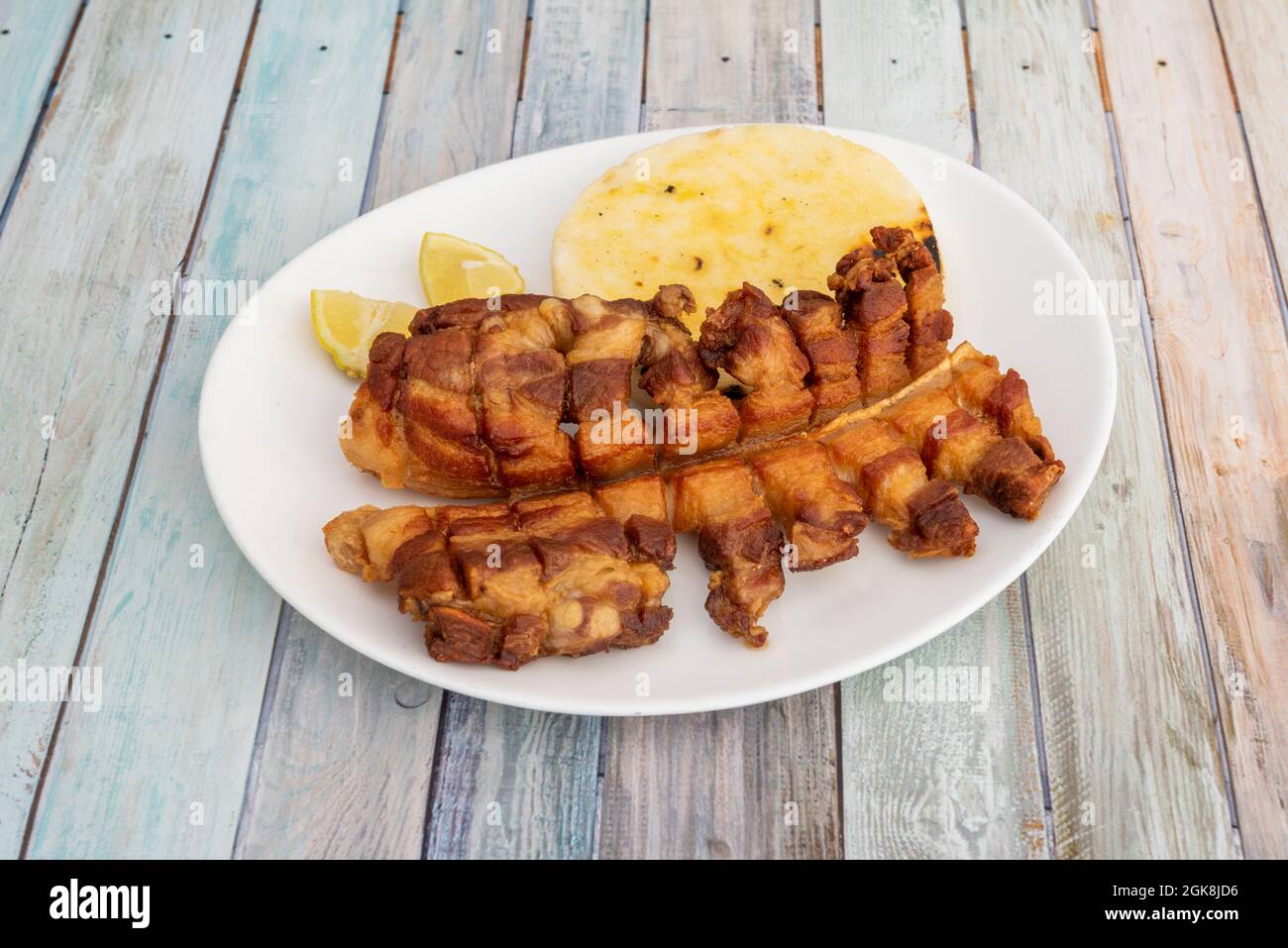 A diferencia de las arepas rellenas el chicharrón no va dentro de la arepa sino que se incorpora en su masa. Siempre usaras el doble en peso de harina de maíz que de chicharrón amasa con agua suficiente y listo. Arma todas las arepas hasta terminar la maza y colócalas en la bandeja para hornear. Photo about Chicharrón is a dish generally consisting of fried pork belly or fried pork rinds. WhatsApp Chicharrón con Arepa. Remove the pork belly from the brine pat dry with paper towels and place the brined pork belly in a pouch and vacuum seal on medium. Te ofrecemos el mejor precio. W ednesday 10 AM - 9 PM. Esta arepa evoca la tradición de nuestra región santandereana y tiene gran aceptación ya que es de un delicioso.